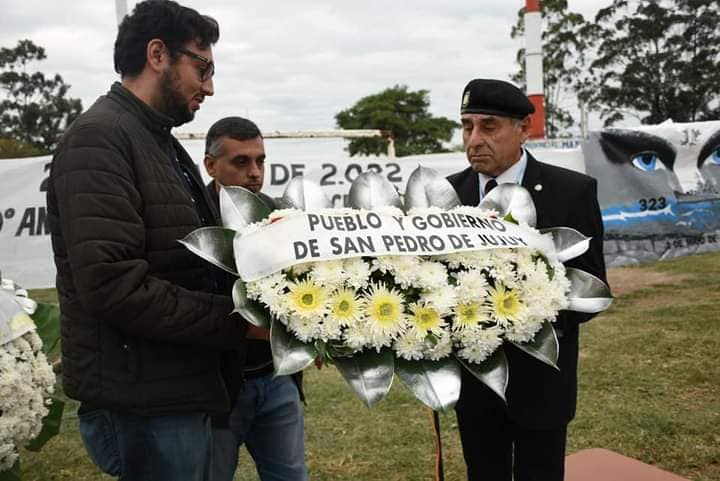 También el municipio y la Asociación 2 de abril de veteranos de guerra y familiares de caídos en Malvinas, colocaron ofrendas florales frente al monolito y a viva voz recordaron los nombres de los sampedreños fallecidos en el hundimiento del crucero Ara general Belgrano. Por su parte, el titular del ejecutivo sampedreño manifestó que la idea de estos homenajes es que esta parte de nuestra historia y sus protagonistas, nunca se pierda. «Los sampedreños tenemos la obligación de seguir recordándolos, de tener presente como fueron los hechos, para rendirle todos los años un merecido homenaje» resaltó Bravo.