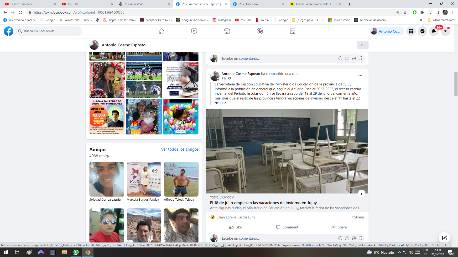 La Secretaría de Gestión Educativa del Ministerio de Educación de la provincia de Jujuy informó a la población en general que, según el Anuario Escolar 2022-2023, el receso escolar invernal del Período Escolar Común se llevará a cabo del 18 al 29 de julio del corriente año, mientras que el resto de las provincias tendrá vacaciones de invierno desde el 11 hasta el 22 de julio.
